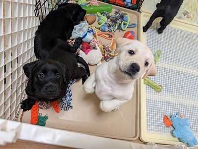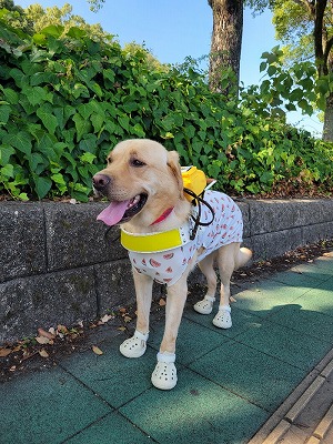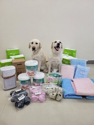 訓練犬たち用には犬用靴、ひんやりマット、卓上冷風機を頂きました。