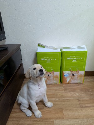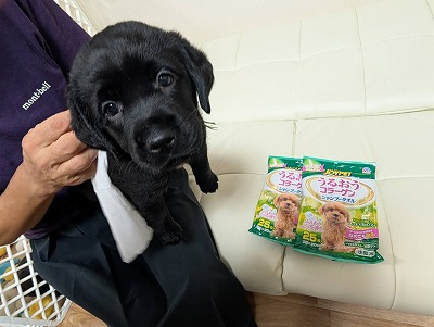子犬が誕生したので子犬のためにペットシーツやシャンプータオルなどを頂きました。