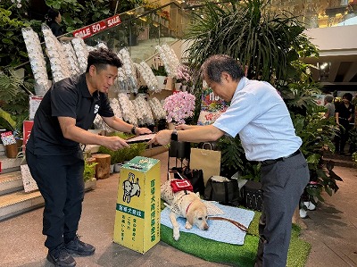 店頭での普及啓発・募金活動中には盲導犬事業に