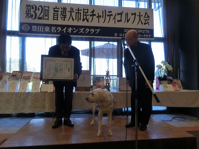 その後、中部盲導犬協会から豊田東名ライオンズクラブ様、ロイヤルフレンドシップ様へ感謝状をお渡しさせて頂きました。