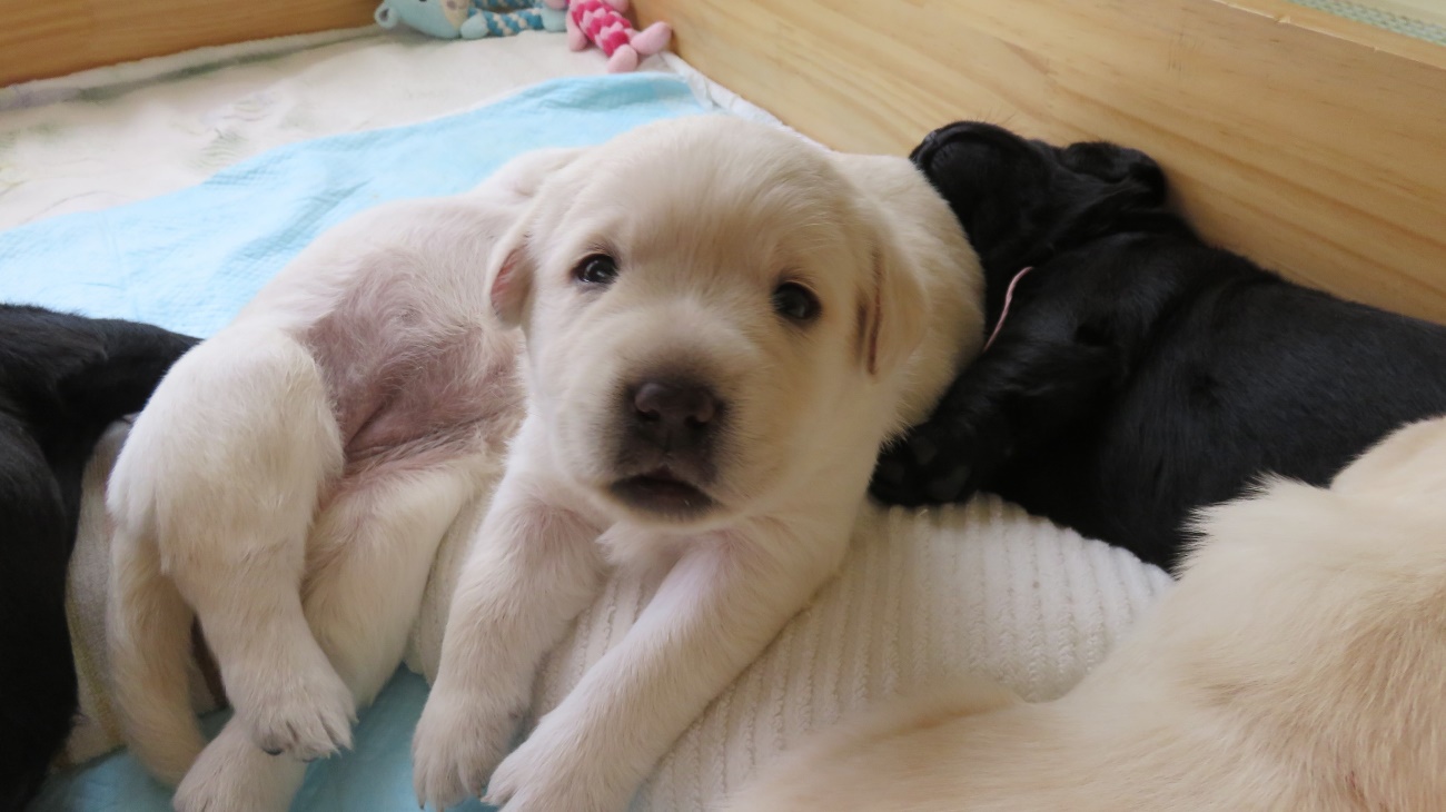 生後12日頃、おめめが開き、もう少しすると耳も聞こえるようになります。