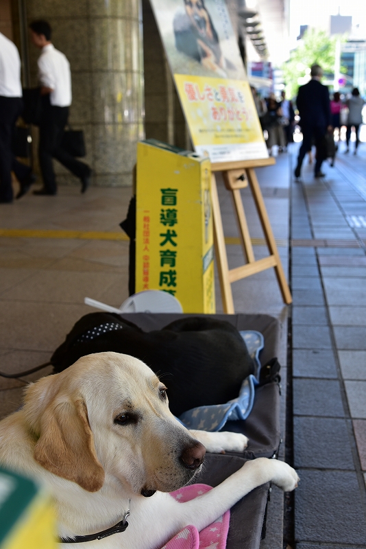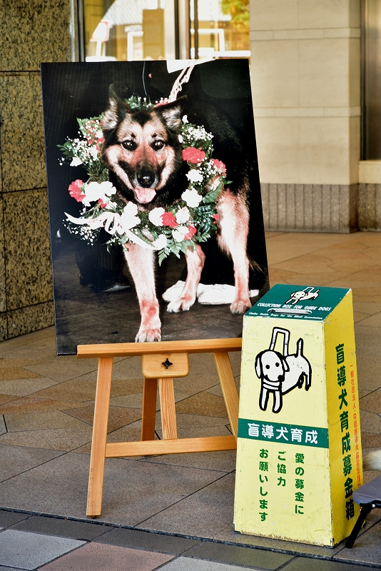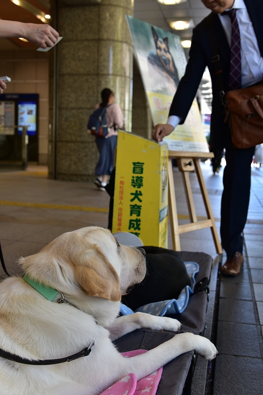1.通り過ぎる人たちをウォッチング中のPR犬。