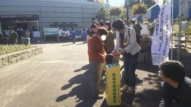 11月12日、荒子川公園ガーデンプラザ様主催の荒子川公園秋まつりが行われ、中部盲導犬協会も参加させて頂きました。その中で募金活動を行い、プルデンシャル生命保険名古屋第四支社様の職員の方とご家族の方々にごボランティアとしてお手伝いをして頂きました。